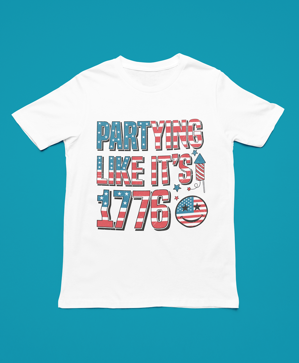 Partying Like It's 1776 on White Tee Bella Canvas USA7